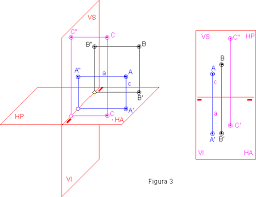 de un punto del espacio a la distancia entre él y su proyección en el plano vertical, que equivale a la distancia entre la proyección horizontal y la línea de Tierra (LT).
